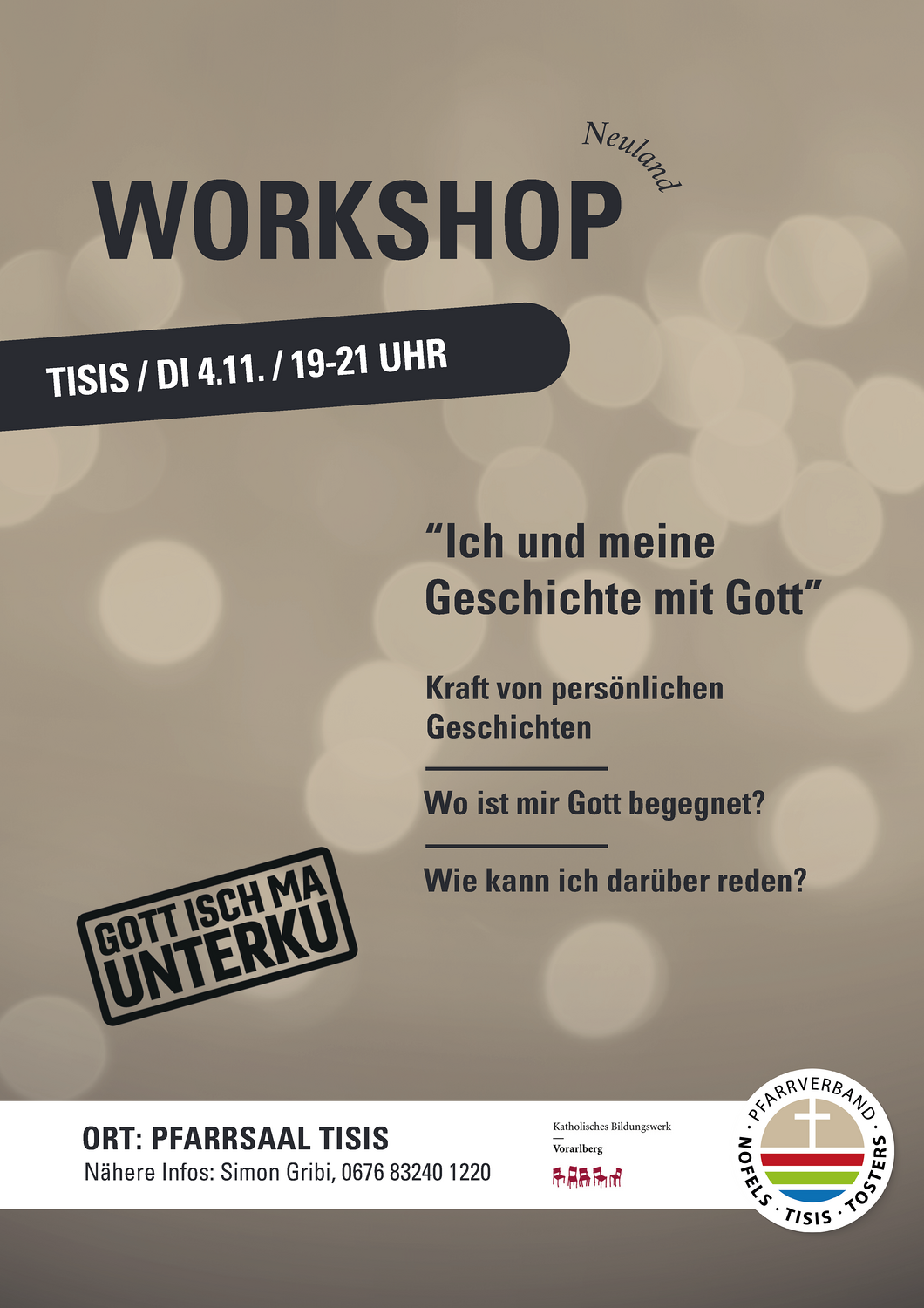 Am 4. November findet zum bereits zweiten Mal eine Workshop zum Thema "Ich und meine Geschichte mit Gott". Angeregt durch die Kampagne möchten wir gemeinsam der Frage nachgehen, wann und auf welche Weise uns Gott bereits in unserem Leben begegnet ist.