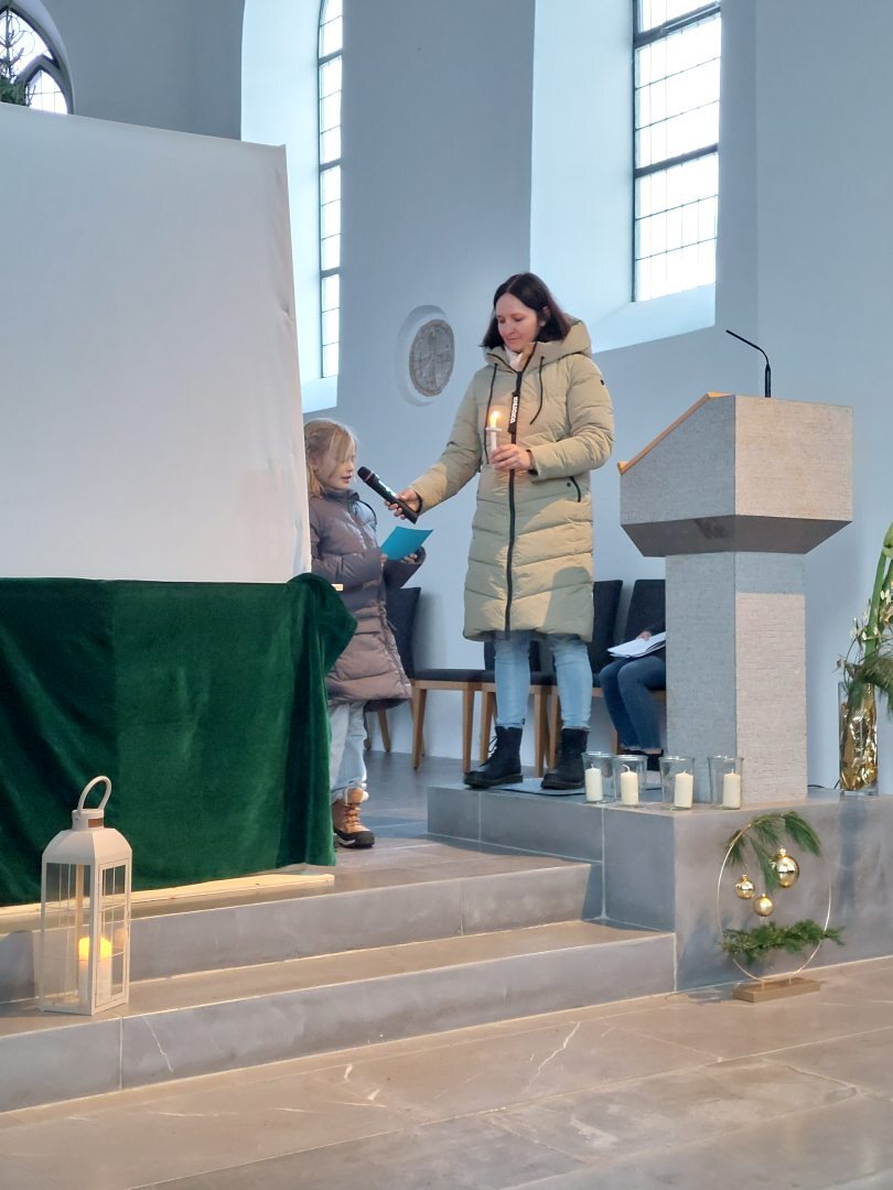 Im Anschluss an die weihnachtlichen Segensworte von Pfarrer Hubert, gestalteten die Kinder aktiv unsere Kirche mit und dekorierten den Christbaum neben der Krippe.