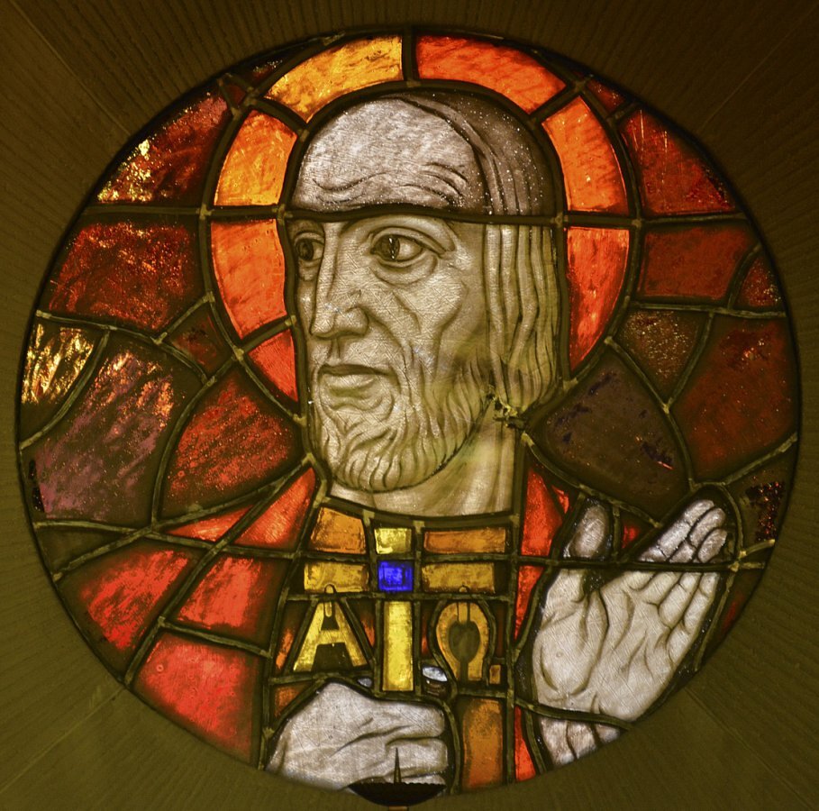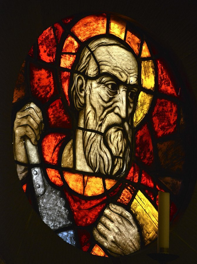 Glasgemälde von Carl Rieder (siehe auch Lustenau) 1934 in den Rundbogenfenstern vier Engel und Symbole der acht Seligkeiten, in den Kreisfenstern des Umganges die 12 Apostel; In der Theresienkapelle fünfteiliges Fenster mit Jesus und Maria, Josef, Kolping und hl. Hildegard, über der Empore Papst Gregor der Große, Papst Pius XI. und Landesbischof; in der Taufkapelle hl. Christophorus, in der Beichtkapelle Verlorener Sohn; in der Sakristei Hll. Johann B. Vianney, Don Bosco und Tharcisius.
