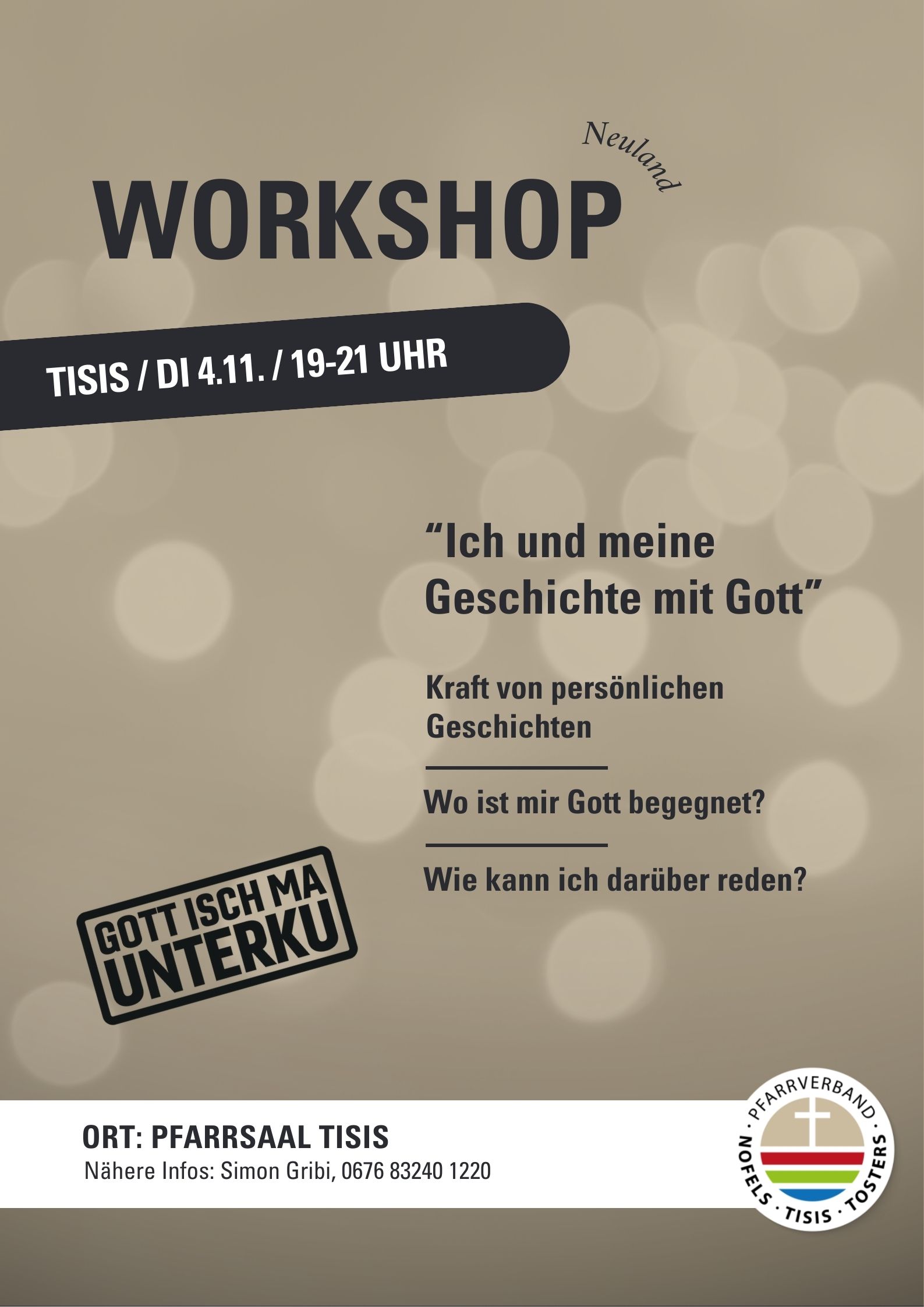 Aufgrund des großen Anklangs findet am 4. November um 19:00 Uhr im Pfarrsaal Tisis nochmal ein Workshop statt. Herzliche Einladung, sich selbst dieser Frage zu stellen!