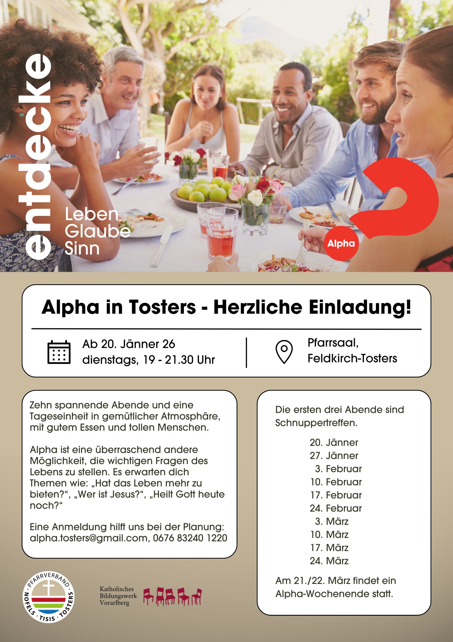 Ab dem 20. Jänner startet ein Alpha im Pfarrsaal Tosters. Herzliche Einladung dazu!